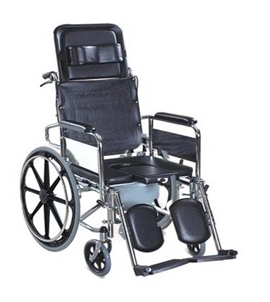 รถเข็นนั่งถ่าย ปรับนอนได้ เหล็กชุบโครเมี่ยม ล้อแม็ก เบาะตัว U