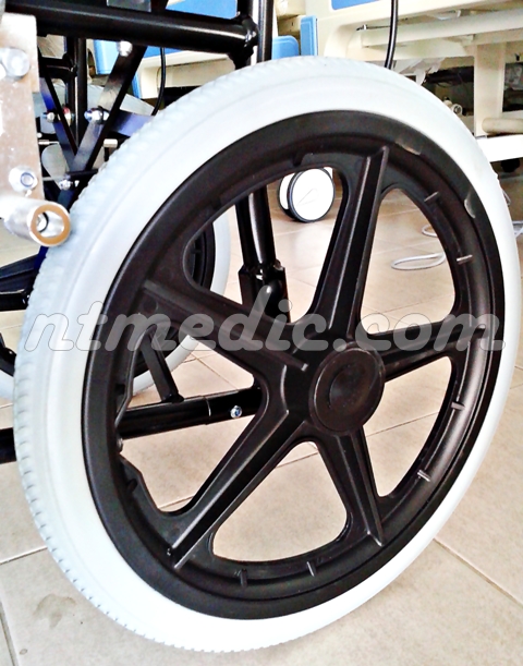 – ล้อรถเข็นเป็นล้อแม็กยางตัน ไม่ต้องสูบลมยาง จึง หมดกังวลเรื่องยางแบนระหว่างใช้งาน