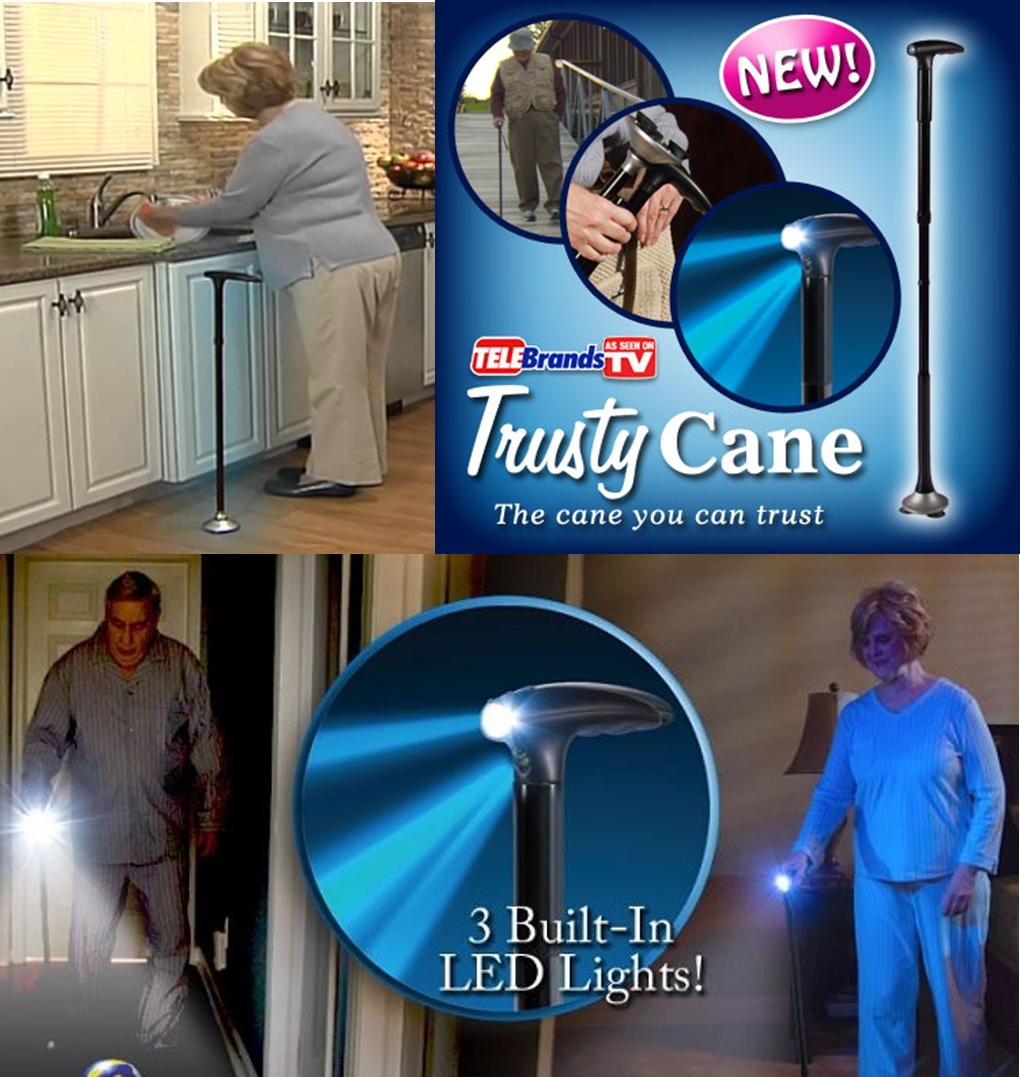 – ไม้เท้า Trusty Cane มีไฟฉาย ส่องสว่างในที่มืดได้